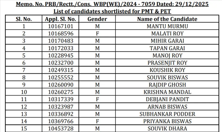 WBP Constable Result 2025–26 PDF Download Link